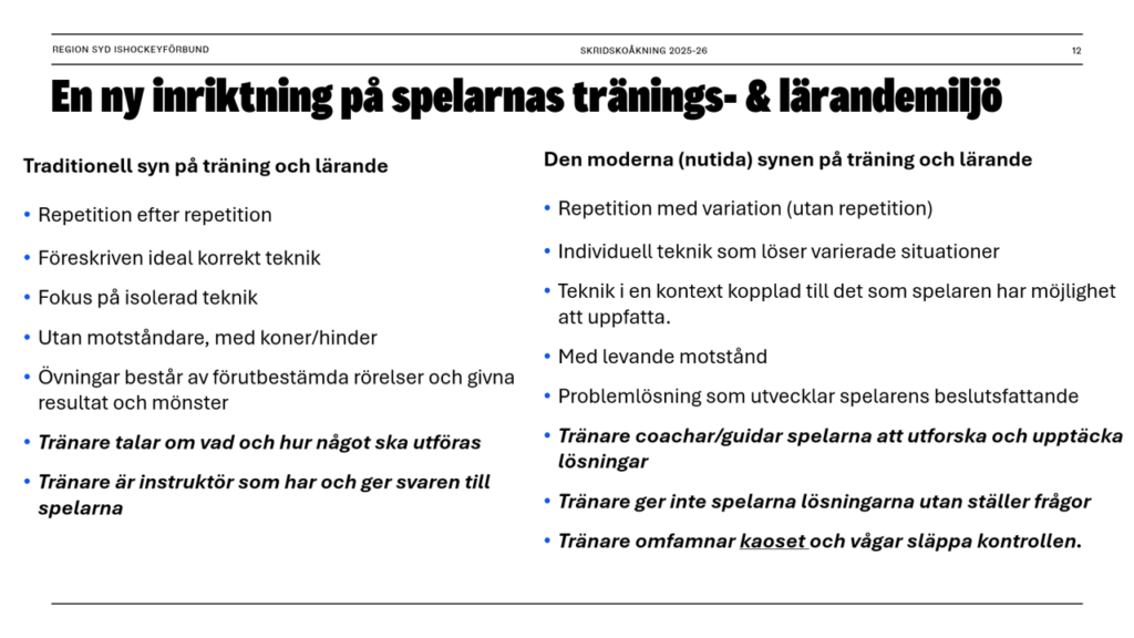 ”Det är dags att gå från den gamla skolans isolerade teknikträning till en träning mer variation och beslutsfattning”